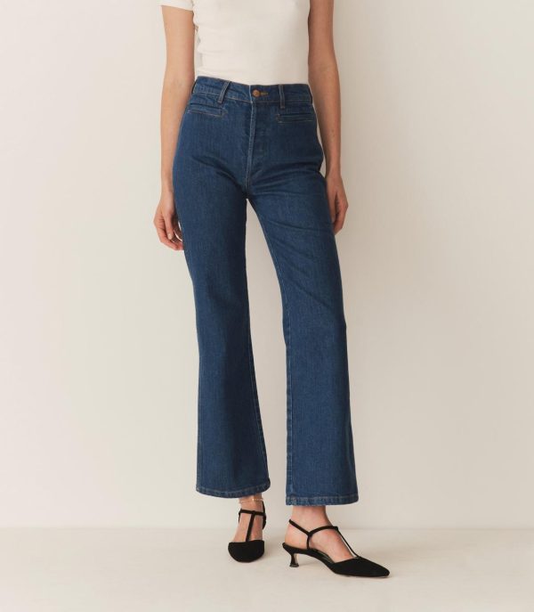 Crafted from cotton denim with a hint of elastane for stretch, the ‘60s-inspired Nikita Jean—a favorite of our co-founder, Margaret—takes cues from sailor silhouettes, and features a high waist with a button and zipper closure and two front welt pockets.