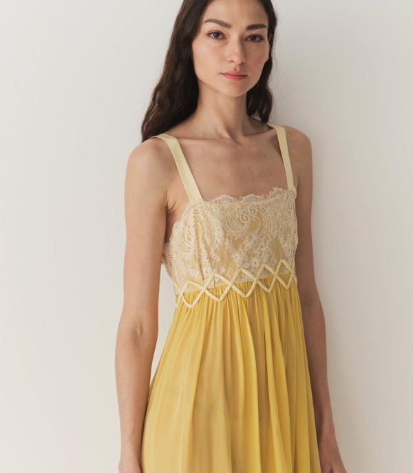 In diaphanous silk georgette, the DÔEN Heirloom Analia Dress is an extra-special keepsake that’s destined for a twirl on the dancefloor. It features a square neckline, satin straps, and an intricate lace overlay at the bust. An empire waist adorned with a sandwashed satin zigzag appliqué detail gives way to an ankle-grazing skirt. Satin-covered buttons fasten at the back.