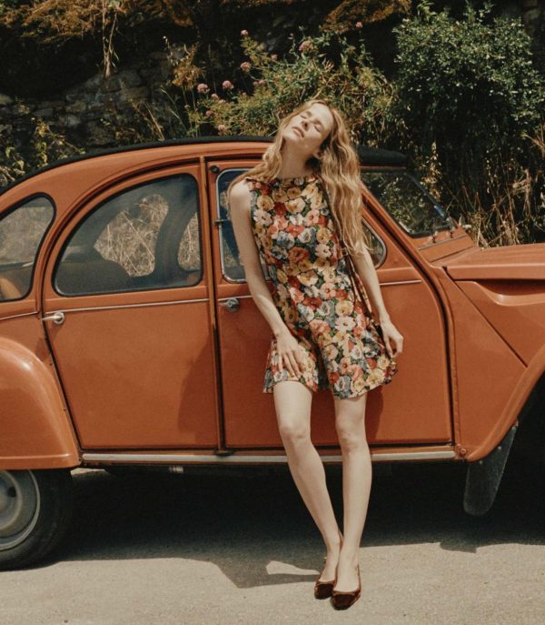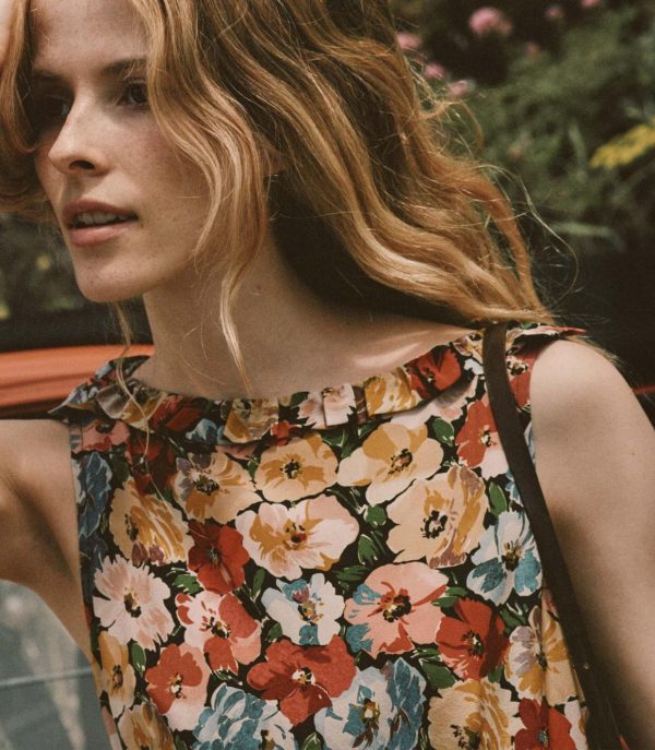 In washed silk crepe de chine, the Messina Dress features a ‘30s-inspired bateau neckline trimmed with petite ruffles. A fitted bodice with an invisible side zipper gives way to an A-line mini-length skirt adorned with flouncy godets at the hem.