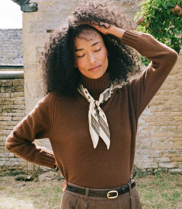 In sumptuous 100% cashmere, the ‘60s-inspired Hayworth Cashmere Turtleneck features a fitted silhouette, full-length raglan sleeves, and ribbing at the foldover turtleneck, sleeve cuffs, and hem.
