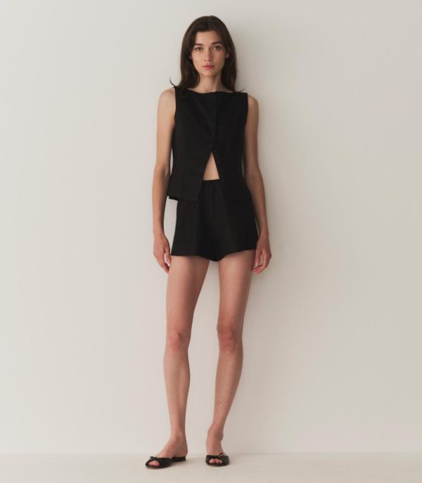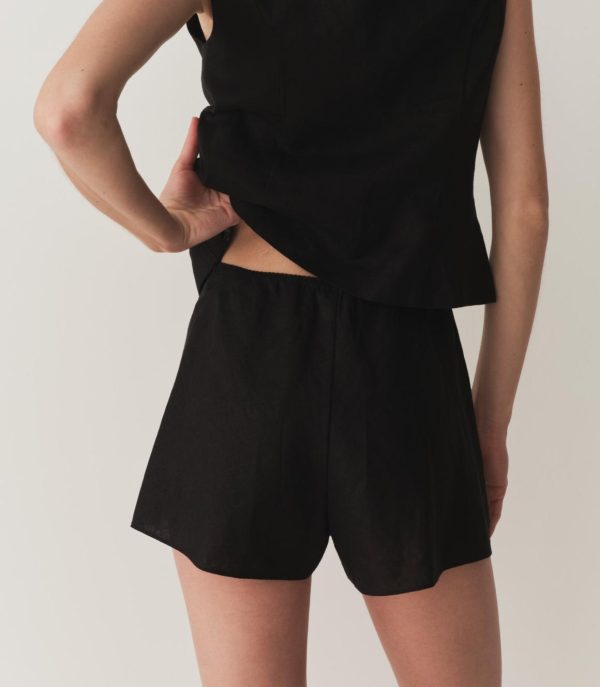 In soft midweight linen, the Loren Linen Short—a favorite of our co-founders, Margaret and Katherine—is an effortless pull-on style with an A-line silhouette and a high waist trimmed with elastic scallop detailing.