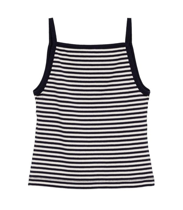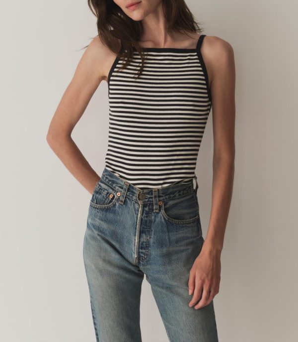 Crafted from a soft blend of regenerative and recycled cotton and rendered in our nautical Nantucket Stripe, the ‘90s-inspired Angie Tank features ultra-skinny spaghetti straps, a high square neckline, and a fitted silhouette.