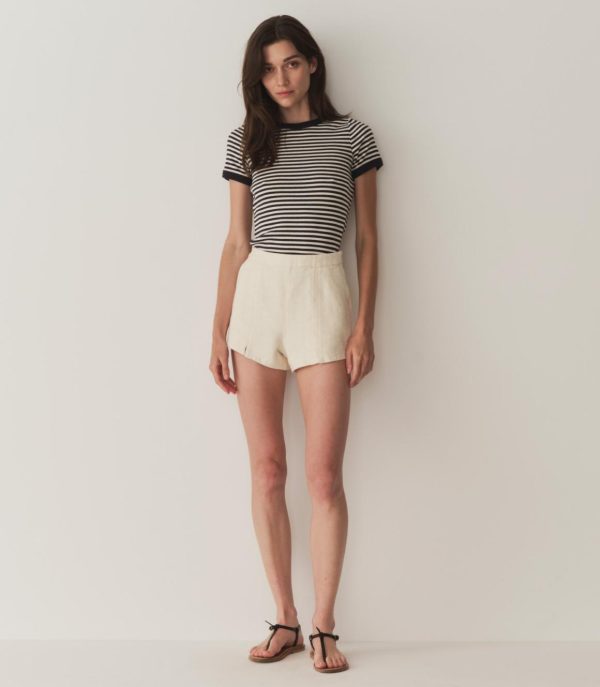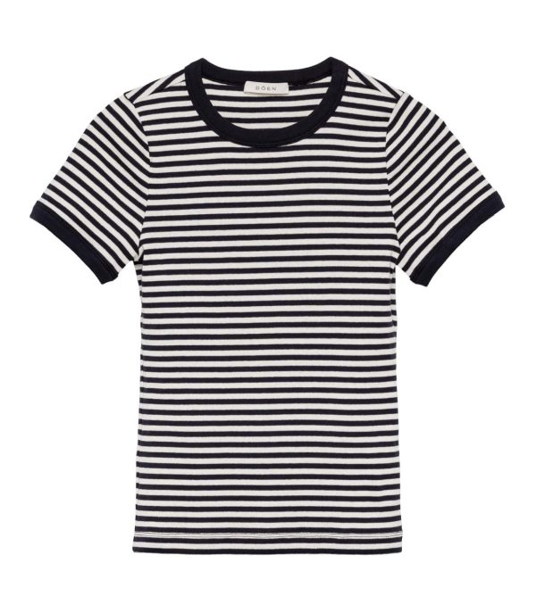 Crafted from a soft blend of regenerative and recycled cotton and rendered in our nautical Nantucket Stripe, the Vivi is our take on a ‘90s-style baby tee. It features short sleeves, a classic crew neck, and a fitted silhouette.