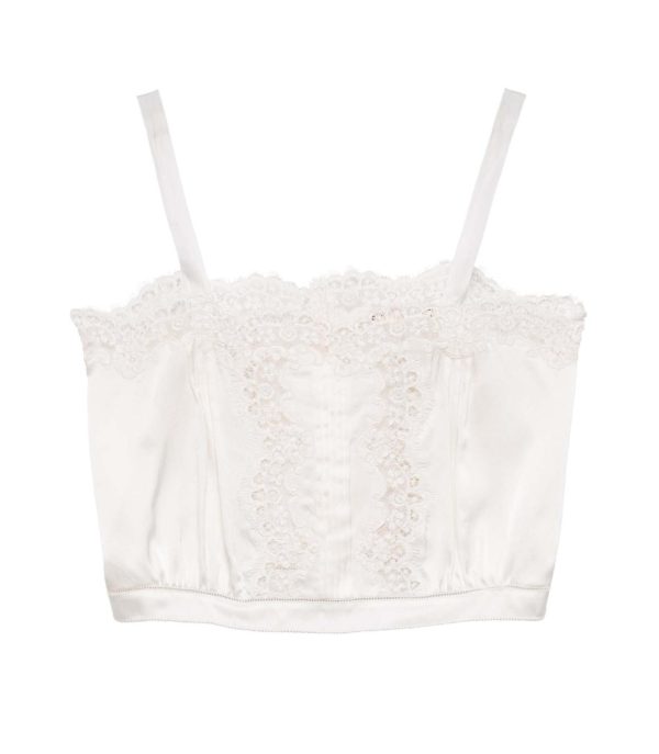 In buttery silk satin, the antique-inspired Diya Top features slender straps, a square neckline trimmed with intricate floral scallop-edged lace, and ladder trim at the slightly cropped hemline. The yoke and back are adorned with inset floral lace and clustered pintucks, while self-covered buttons extend down the back.